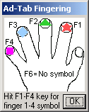 Ad-Tab fingering can be hidden, shown as “outline” symbols, shown with symbols in full color, or shown only as color digits via the View | Ad-Tab menu: